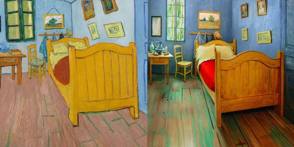 The Art Institute of Chicago created an immersive experience, called "Let Yourself In", where visitors have the opportunity to stay a night in an infamous Vincent Van Gogh painting. Blending Van Gogh’s three different versions of the Bedroom, the most popular part of the exhibit transforms the painting into a 3 dimensional space. The room isn’t interpreted into reality, but rather, the structure still exists as the artist painted it. The furniture and walls were constructed with materials that mimic Van Gogh’s heavy brush strokes, and the lines, colors, and shadings are painted to a tee. Ad Age describes the team’s tasks as making the room “as faithful to the painting as possible, yet livable”.